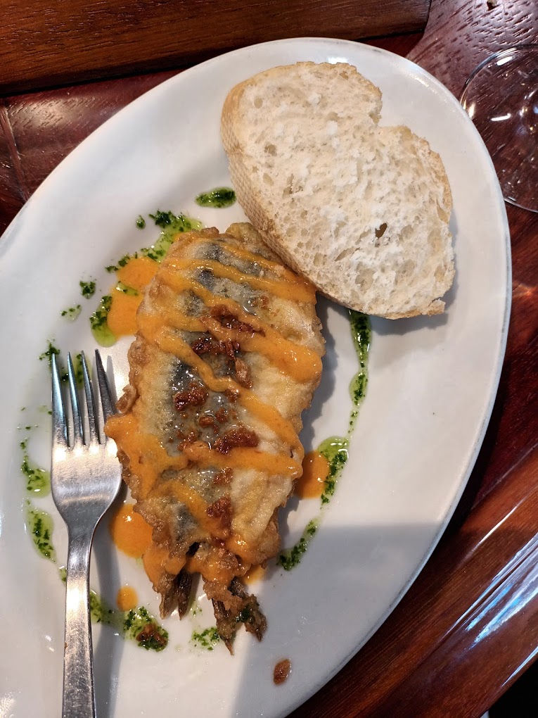 Lo hemos de reconocer, este bar lo descubrimos hace pocos años y la verdad es que es un gran acierto. Es una bar de toda la vida del barrio, que antes de que la zona se llenará de edificios nuevos solo visitaban los lugareños. Recomendar este sitio es un acierto total. Si nos tenemos que quedar con un pintxo sería el de anchoa rebozada. Que ricura! Pero en este pequeño bar está rico todo: las vieiras, el pintxo de ensaladilla, croquetas, los champis…