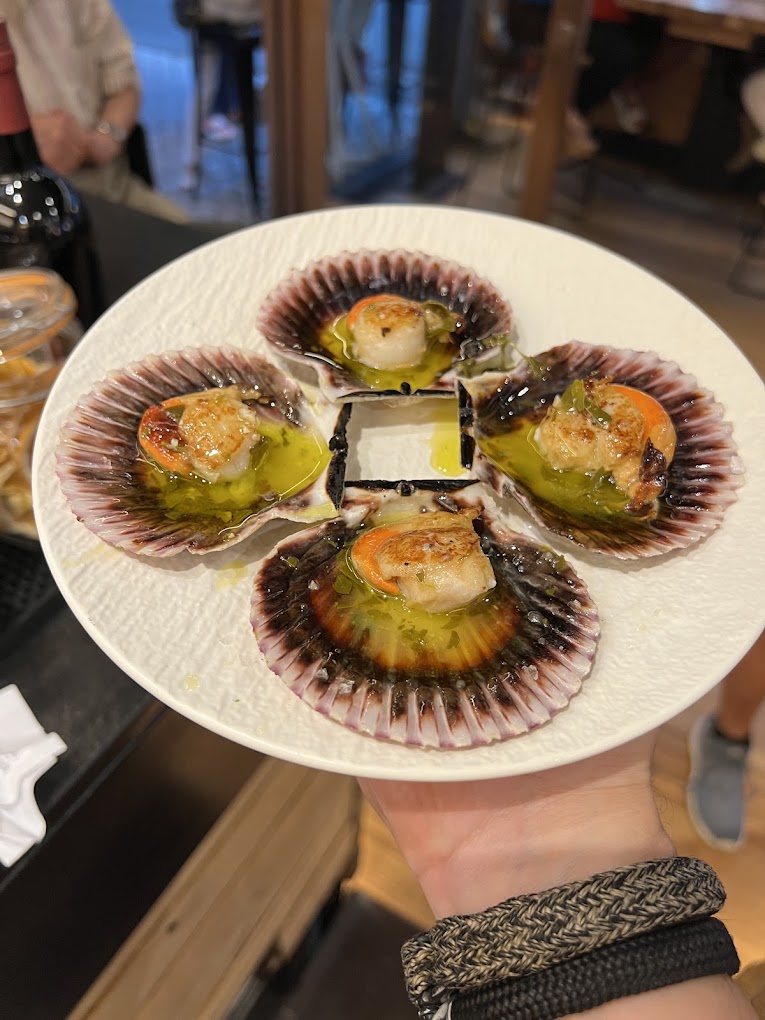 We love the octopus leg dish, it’s so delicious! The txuleta (rib-eye steak) center is out of this world, and the txipiguetis… we’ll let you try them, they’re amazing!